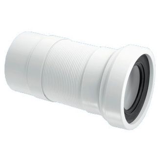 Имеет диапазон удлинения от 250 до 550 мм, что позволяет варьировать расположение сантехники. Качественные уплотнители и прочный материал обеспечивают герметичность соединения. Пластиковая гофра позволяет максимально удобно установить унитаз независимо от расположения стояка и его материала (пластик, чугун).